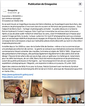 Photographer Denis Asch presents a visual testimony on endangered animal species. – September 2019
